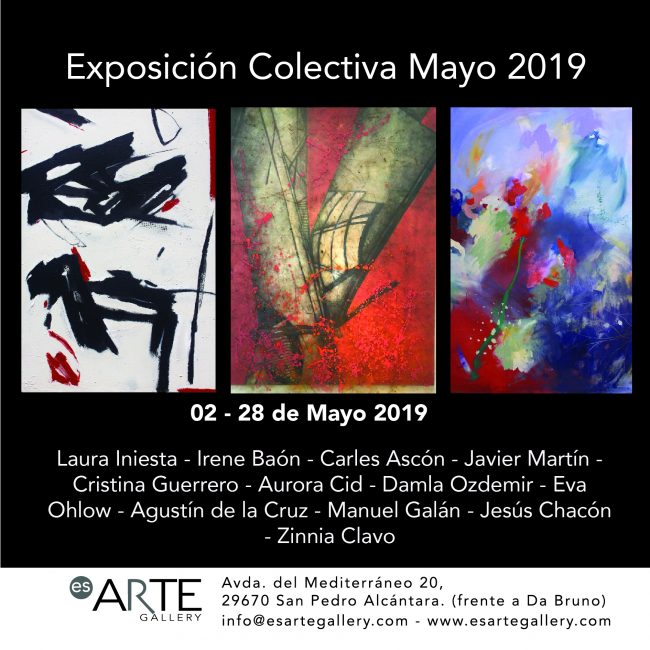 Exhibition: Group Exhibition May 2019. Date: From 02 of May to 28 of May 2019. Place: Es.Arte Gallery Marbella. During this month of May Es.Arte Gallery exhibits works of artists like Laura Iniesta, Irene Baón, Carles Ascón, Javier Martín, Cristina Guerreo, Aurora Cid, Damla Ozdemir, Eva Ohlow and Agustín de la Cruz. Come and enjoy…