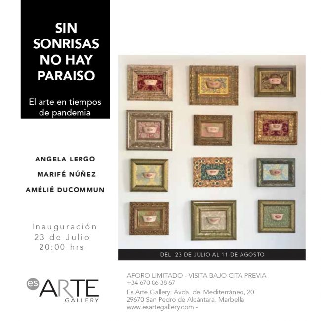 WITHOUT SMILES THERE IS NO PARADISE Art in a pandemic time ANGELA LERGO – MARIFÉ NÚÑEZ – AMÉLIÉ DUCOMMUM Desde el 23 de Julio – al 11 de Agosto Es.arte gallery, presents the Exhibition entitled “Without smiles there is no paradise” framed in a pandemic period COVID19. Three women committed in this context, make an…