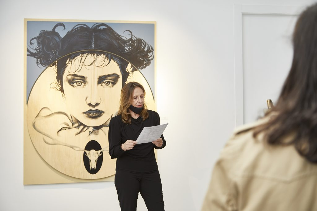 Sin que la propia fisonomía de la retratada fuera determinante en el planteamiento de la obra, y siguiendo una recomendación de Mallarmé, Matisse pintó a su mujer bajo su emblema de triunfo, y esto es, en esencia, otorgarle a la pintura una capacidad transformadora a partir del razonamiento crítico. Algo parecido ocurre con el trabajo de esta artista.